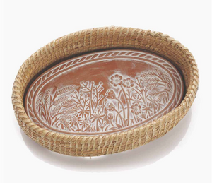 Keep bread, rolls, tortillas, and more warm with this terracotta warmer that sits inside a kaisa grass basket. Simply place the terracotta stone in a 350 degree oven for 10 minutes. Put warm stone in the basket. For best results, wrap bread in a towel before placing in basket. Add the lid to keep items warm even longer.